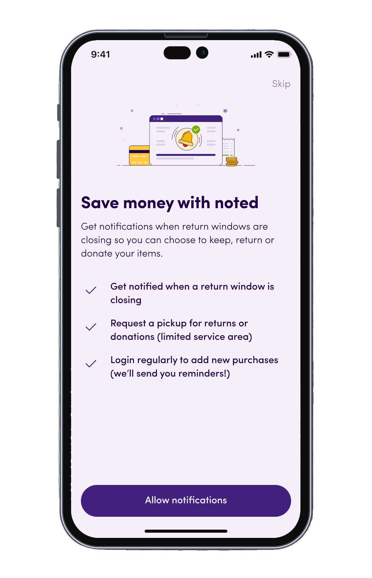 Our new app gives you peace of mind by organizing all of your purchases & keeps track of their return windows.